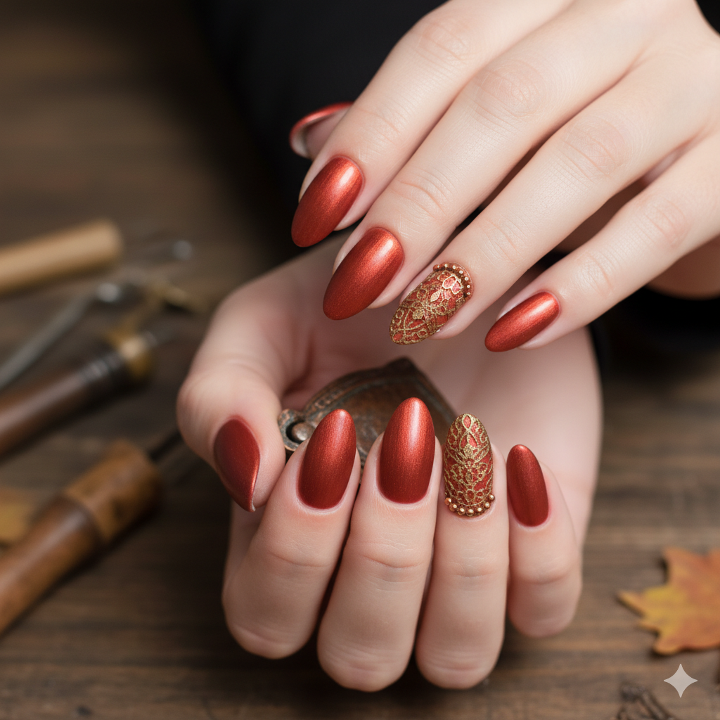 Rust red nails embody autumn in a single color. They’re bold yet earthy, making them a perfect choice for both casual and dressy occasions.